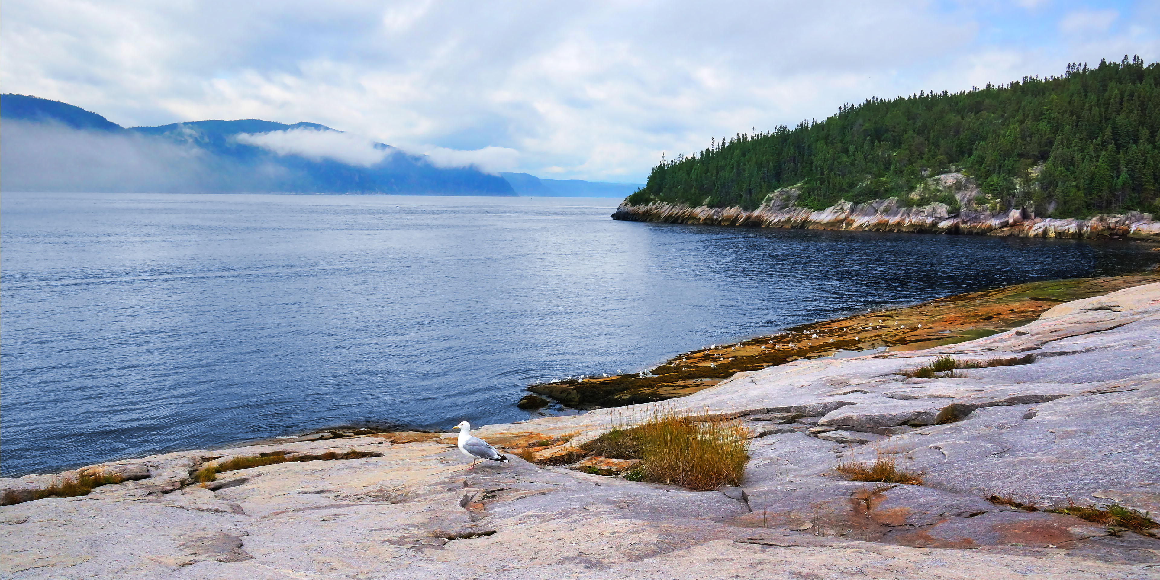 Admire the natural beauty of Tadoussac Bay, showcasing breathtaking views of the Saguenay Fjord and St. Lawrence River, surrounded by dense forests that provide a home to abundant wildlife.