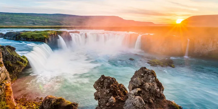 Admire the incredible “Waterfall of the Gods” and visit a folk museum detailing 19th-century Icelandic farm life.