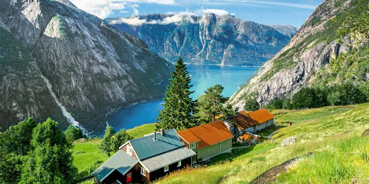 Travel to the Viking village of Gudvangen, called the “meadow of the Gods,” through the Naerøyfjord.