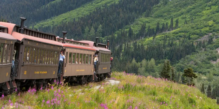 Delight in stunning mountain scenery as you journey across the White Pass summit and into the Yukon.