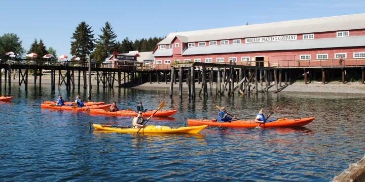 Icy Strait Point is a re-created village outside the small town of Hoonah, a thriving Tlingit community. A former canning and packing station in a coastal woodland setting, Icy Strait Point is steeped in Native American heritage. The charming island hamlet has been beautifully restored by the local Tlingit people to its original character, offering visitors unique insight into traditional life in an Alaskan fishing village. Today, the old canning station is a museum chronicling salmon and subsistence fishing.
