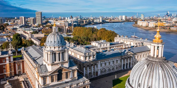 Steeped in royal tradition, Greenwich was the birthplace of King Henry VIII, as well as his daughters, queens Mary I and Elizabeth I. The former royal palace—now the Old Royal Naval College—is one of several buildings in the city that were designed by the renowned 17th-century English architect Sir Christopher Wren. The city is also home to contemporary structural marvels, including the Millennium Dome, or “The O2.” Built to celebrate the beginning of the 21st century, it sits along the River Thames on the Greenwich Peninsula and is the world’s largest dome.
