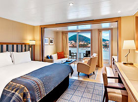 Even the smallest details take their inspiration from the exploratory spirit of the original Vikings, reflecting our deeply held Nordic traditions. Like our forebears, we’ve used light wood grains throughout the ship that show their natural beauty. Colorful textiles such as rugs and tapestries recall the patterns of early Norwegian artists and craftsmen. Subtle accents of leather handrails and touches of slate and teak exude warmth and character. In the Viking Bar, admire the clinker-built design of overlapping wood, mirroring the construction style of the original Viking longships. At The Spa, relax amid the soothing textures of natural Swedish limestone and fragrant juniper wood. In the Explorers’ Lounge, converse with friends amid cozy pelts, Turkish marble and amber and pewter details in the bar—all inspired by the far-reaching trade journeys of Vikings. You’ll find the inspiration of Vikings in every corner of every deck.