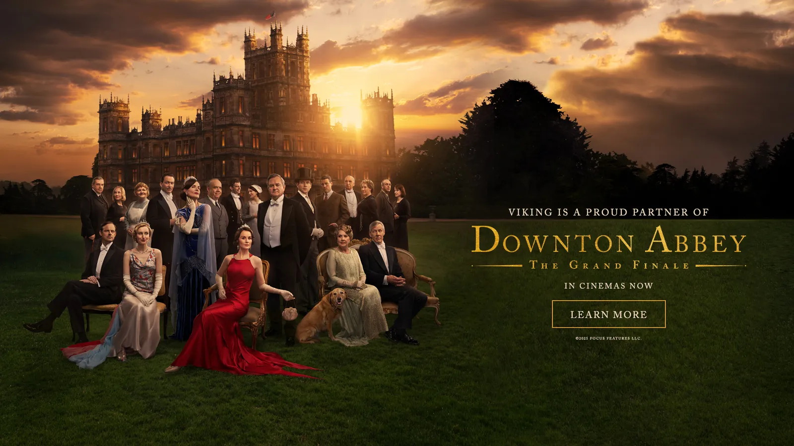 The text on the screen says, “Viking is a proud partner of DOWNTON ABBEY: THE GRAND FINALE. Learn More”